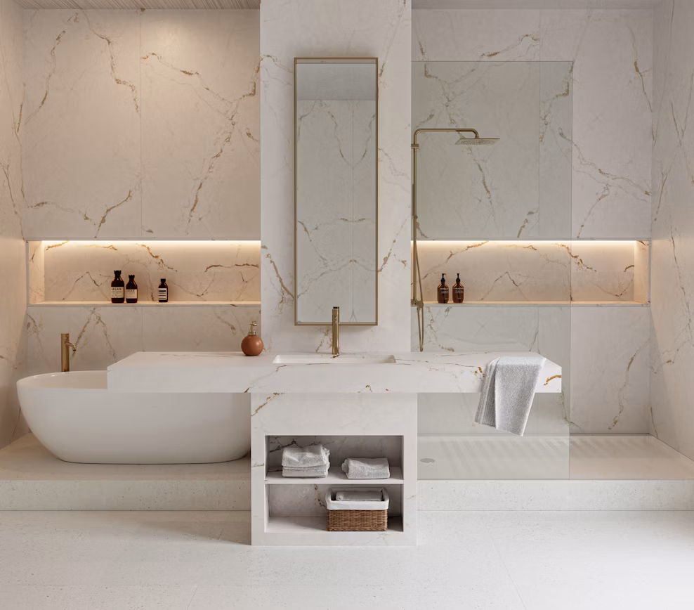 En moderne løsning for både kjøkken og bad, som kombinerer funksjonalitet med stil. Laget av innovative materialer som Silestone og Dekton, gir disse produktene et sømløst utseende og bidrar til et hygienisk og elegant miljø. Tilgjengelig i ulike farger og teksturer, passer de perfekt til moderne interiørdesign. Motstandsdyktige mot flekker, fuktighet, riper og varme, gir de et slitesterkt, stilrent og praktisk valg for rommet ditt.